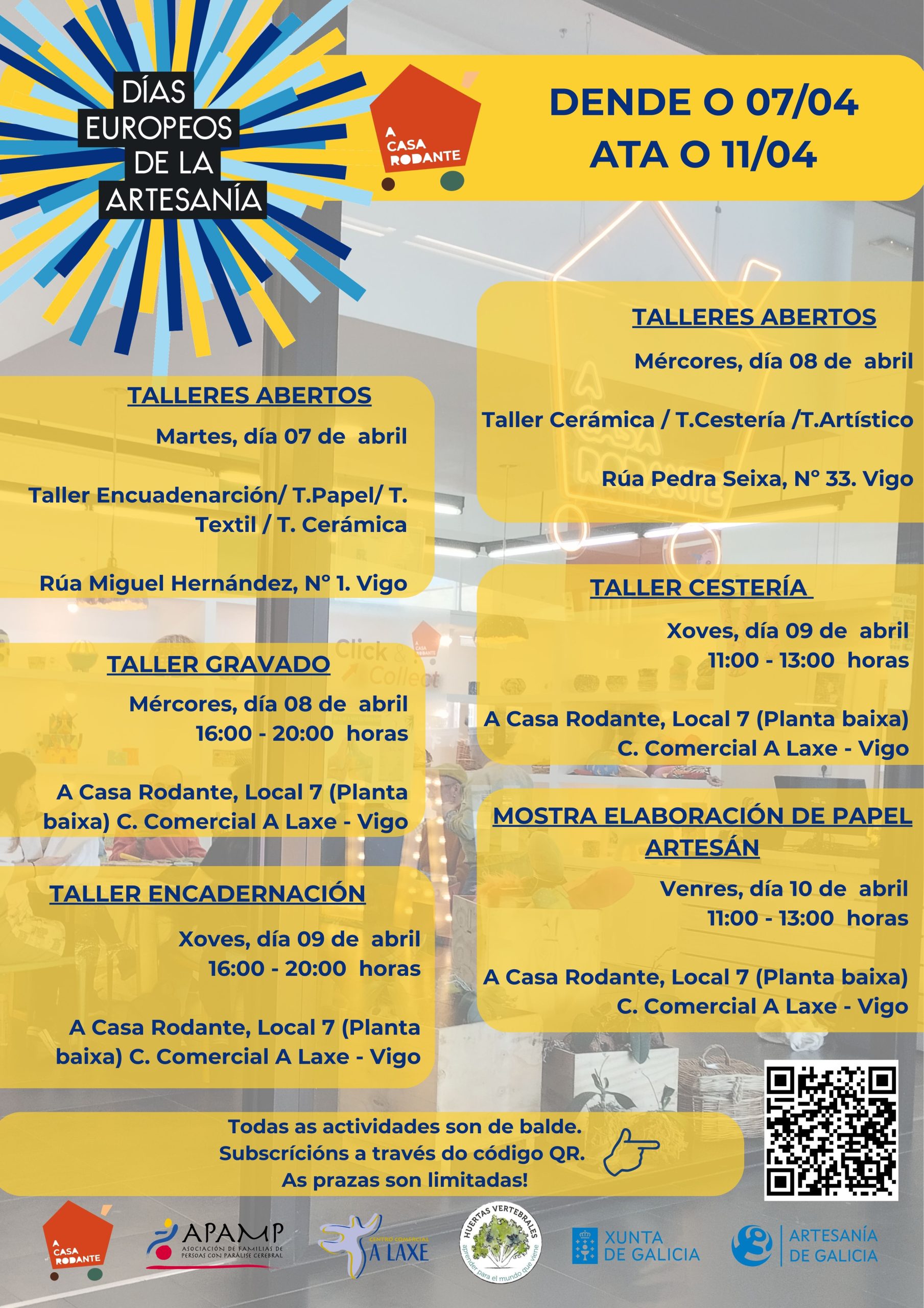 Con motivo da celebración dos Días Europeos da Artesanía -unhas xornadas promovidas pola Escola de Organización Industrial (EOI), a través de Fundesarte, xunto coa Organización de Artesáns de España «Oficio y Arte»- a nosa marca ofrece unha programación especial de actividades. E que terán lugar o vindeiro mes de abril, dende o martes, 07, ata o domingo,12.