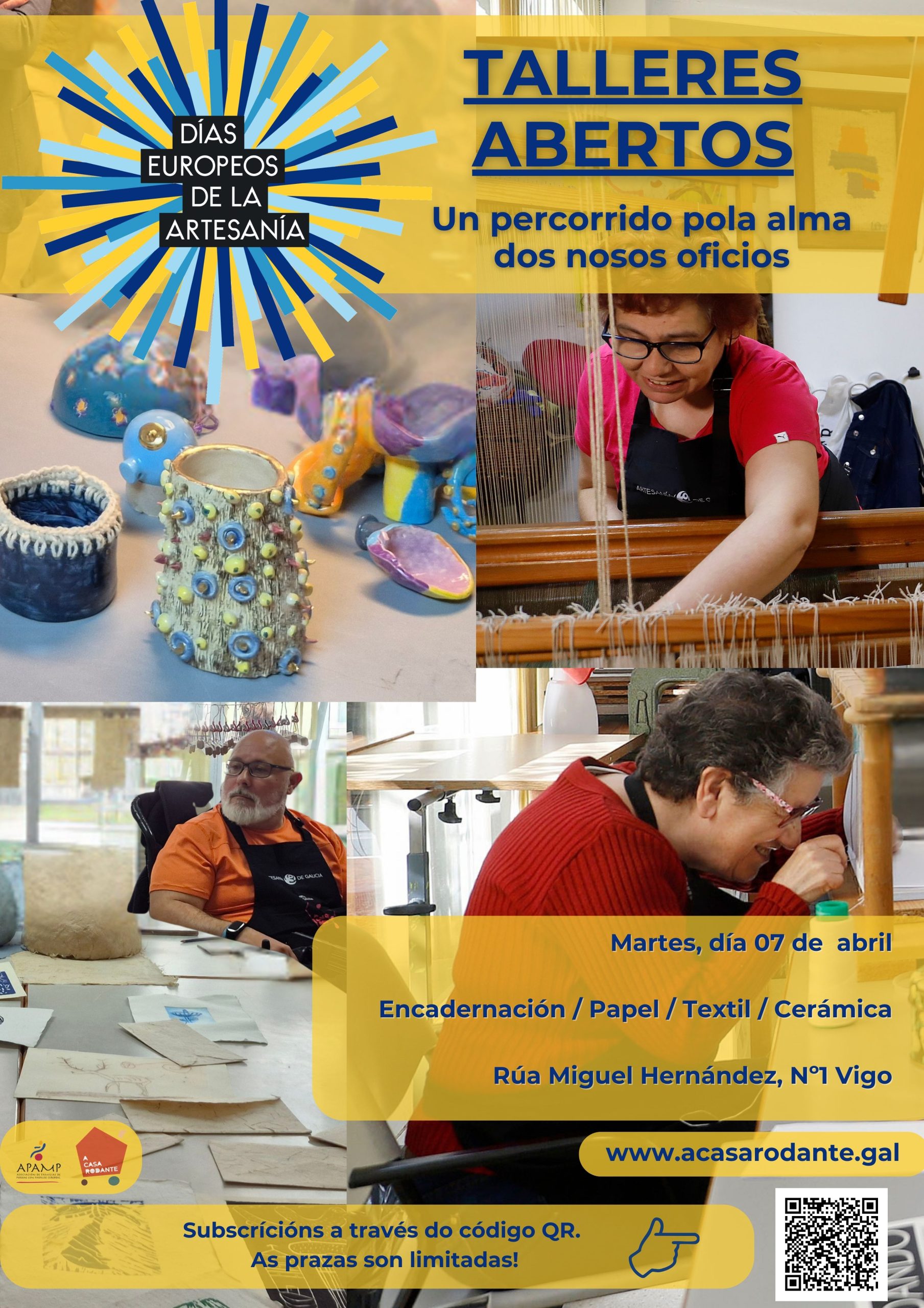 Con motivo da celebración dos «Días Europeos da Artesanía«, a marca A Casa Rodante leva a cabo unhas xornadas de portas abertas nas que tódalas persoas interesadas que así o desexen poderán asistir a unha visita guiada polos talleres de APAMP, onde se realizan todos os seus produtos, porque sabemos que hai procesos que non se poden apresurar e que a beleza nace tamén no encontro.